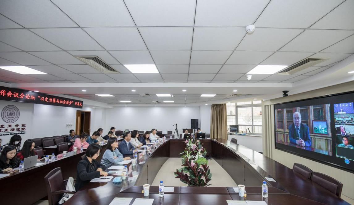 On September 15th , Learning from History and Progress with Society, a sub-forum of the 2021 International Conference on Cooperation in Industry, Academia, Research and Application(Changchun), was held at Jilin University, Humanities and Social Sciences Key Research Base of Ministry of Education, co-organized by the Northeast Asian Research Center of Jilin University, Northeast Asian Studies College of Jilin University, and Jilin University-Moscow State University History Research Center. Professor Cai Lidong, Vice President of Jilin University, Professor Wu Hao, Director of Northeast Asian Studies College and a professor of Kuang Yaming Distinguished Professor of Jilin University, Professor Zhang Guangxiang, Director of the Jilin University-Moscow State University History Research Center and a professor of Kuang Yaming Distinguished Professor of Jilin University, Academician С.P. Karpov, member of the Russian Academy of Sciences, Chairman of the Council of Heads of History Departments of Russian Universities, former Dean of Faculty of History, Moscow State University, Meritorious Professor, Honorary Professor of Jilin University, Academician Л.I. Borodkin, Corresponding Member of the Russian Academy of Sciences, Deputy Head of Faculty of History, Moscow State University, Honorary Professor of Jilin University, Professor С.V. Mironenko, Corresponding Member of the Russian Academy of Sciences, Russian State Archives Director, Professor Ю.A. Petrov, Director of the Institute of Russian History, Russian Academy of Sciences attended the forum. The opening ceremony of the forum was hosted by Professor Wu Hao.