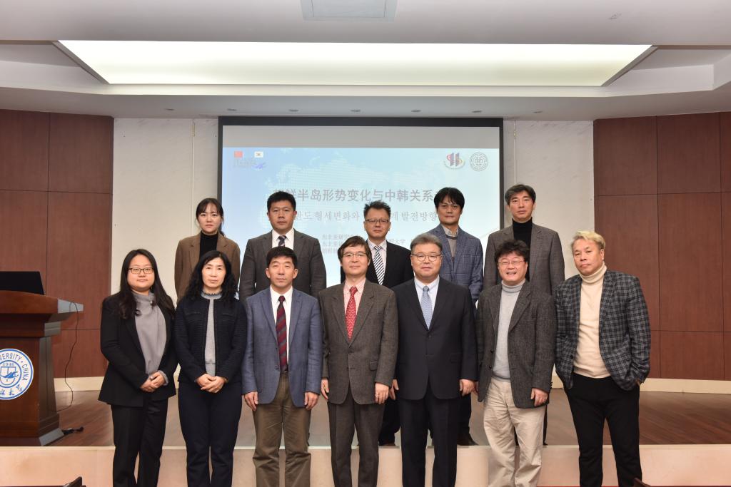 2019年1122日,东北亚研究中心、东北亚研究院、朝鲜韩国研究所与韩国庆熙大学国际地域研究院共同举办国际学术研讨会,主题为“朝鲜半岛局势变化与中韩合作”。庆熙大学国际地域研究院院长金俊烨教授、技术经营大学院院长申尚协教授一行6人和来自麻豆视频 东北亚研究院国际政治研究所、世界经济研究所的部分教师参加了会议。东北亚研究院院长于潇教授和国际地域研究院院长金俊烨教授在开幕式上致辞。