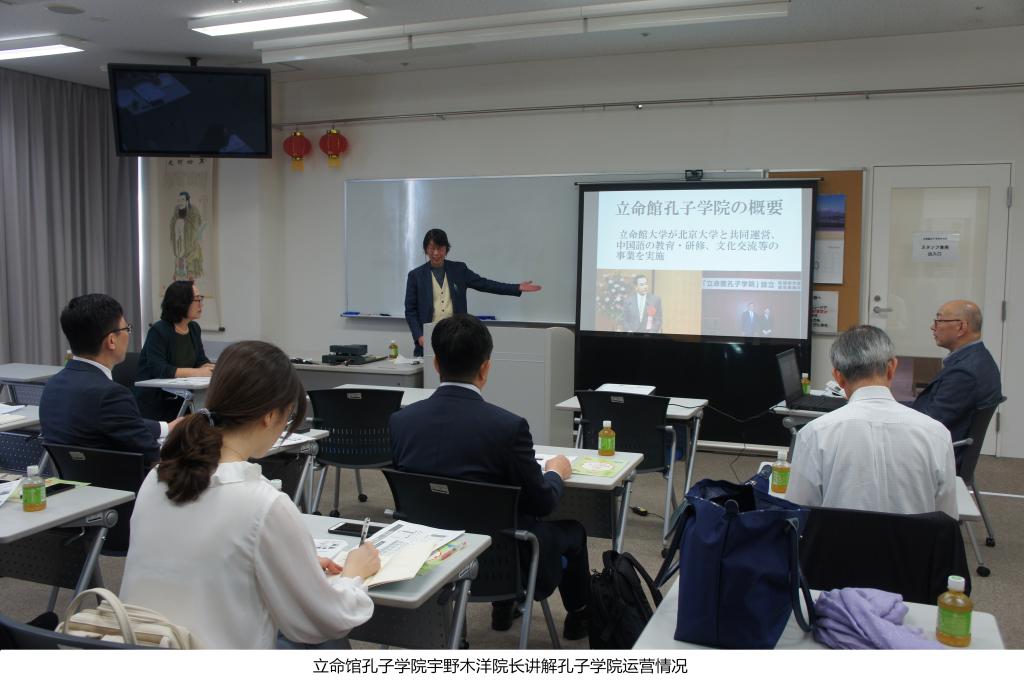 1013日,调研团队在沈海涛教授的带领下启程前往日本。在为期8天的调研期间,调研团队访问了同志社大学、立命馆大学经济学部、立命馆大学孔子学院、多摩大学、工学院大学孔子学院、武藏野大学孔子学院,深入了解日本孔子学院的运营情况。立命馆大学孔子学院宇野木洋院长、工学院大学孔子学院高桥惠子院长分别就两家孔子学院的成立背景、运营情况、主要成绩以及面临的问题做了专题讲解,并与调研团队进行座谈,详细回答了调研团队提出的问题。在武藏野大学孔子学院调研期间,调研团队还参加了孔子学院总部汉考国际和日本青少年育成协会主办的第四届HSK中国留学·求职会,现场了解了日本学生对汉语学习的意愿和日本社会对汉语人才的需求状况。此外,调研团队还访问了同志社大学、多摩大学等未设立孔子学院的日本大学,对这些大学的汉语教学状况进行调研,了解了各大学对合作设立孔子学院的态度。在日期间,每日调研工作结束后,调研团队都结合当天的调研情况进行总结,及时整理资料,交流感想。