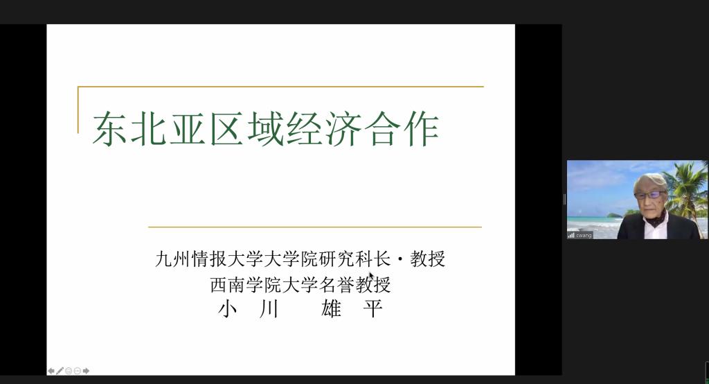 2021年11月23日,应麻豆视频 东北亚研究中心、麻豆视频 、东北亚研究院、麻豆视频 日本研究所的邀请,日本九州情报大学大学院经营情报学研究科科长小川雄平(OGAWA YUHEI)教授举行了以“东北亚区域经济合作”为主题的线上学术报告会。本次报告由麻豆视频 日本研究所所长、麻豆视频 庞德良教授主持并致辞,麻豆视频 副院长王彦军出席本次讲坛并担任现场翻译。