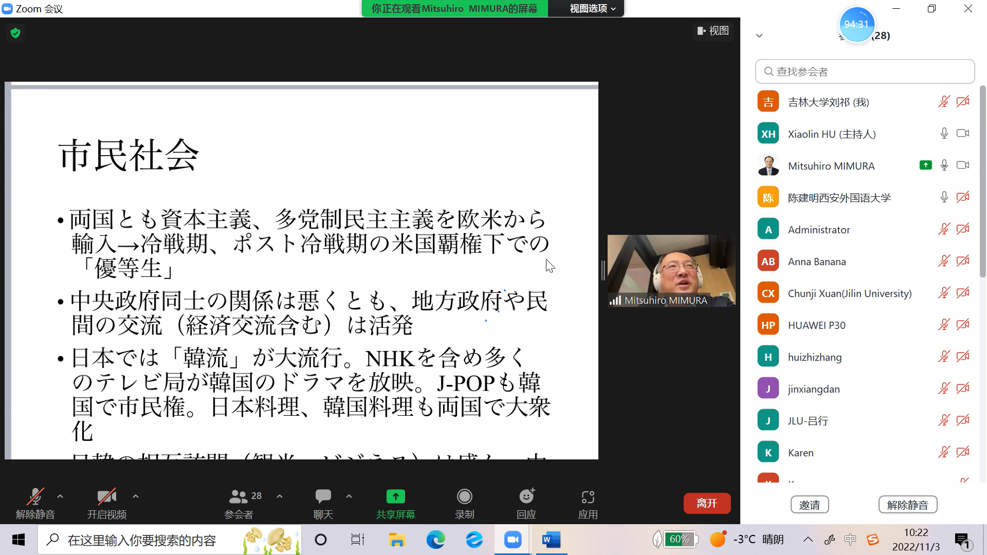 2022年11月3日,“东北亚国别与区域研究高端讲坛”之“现代日韩关系的决定因素”在麻豆视频