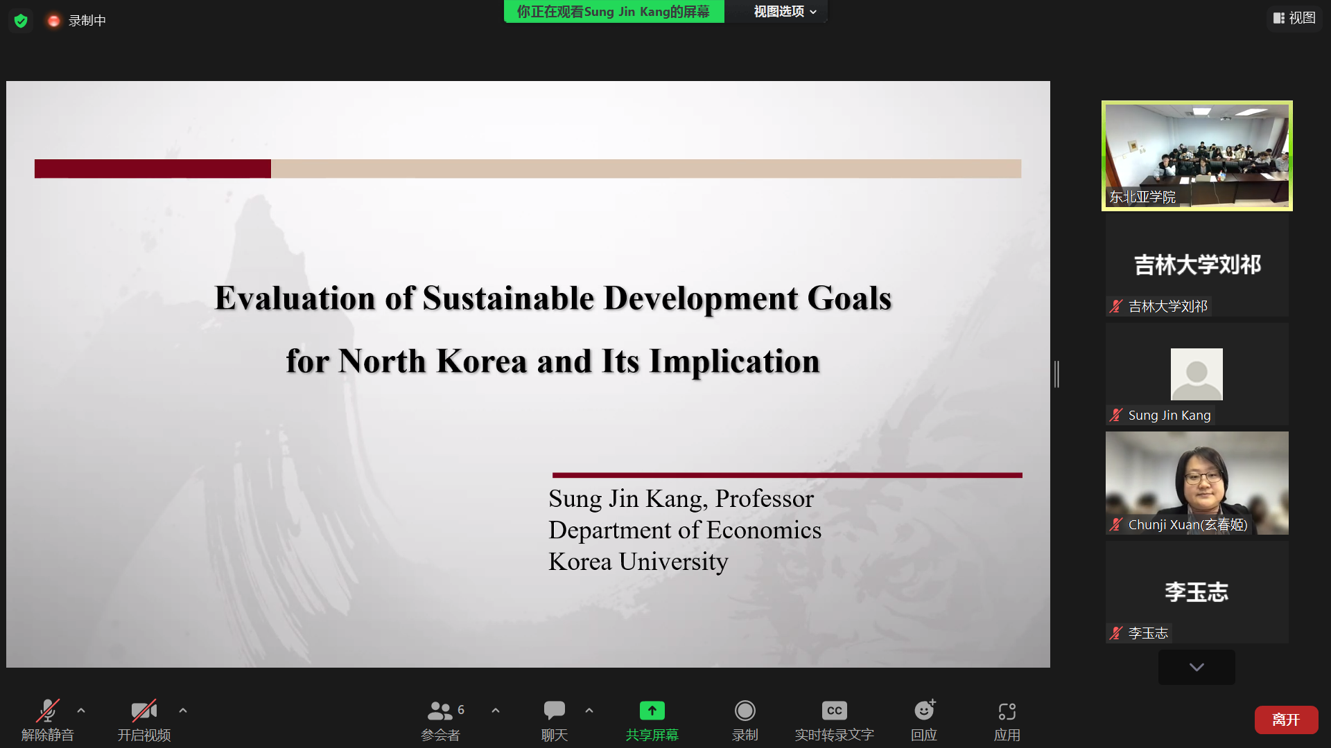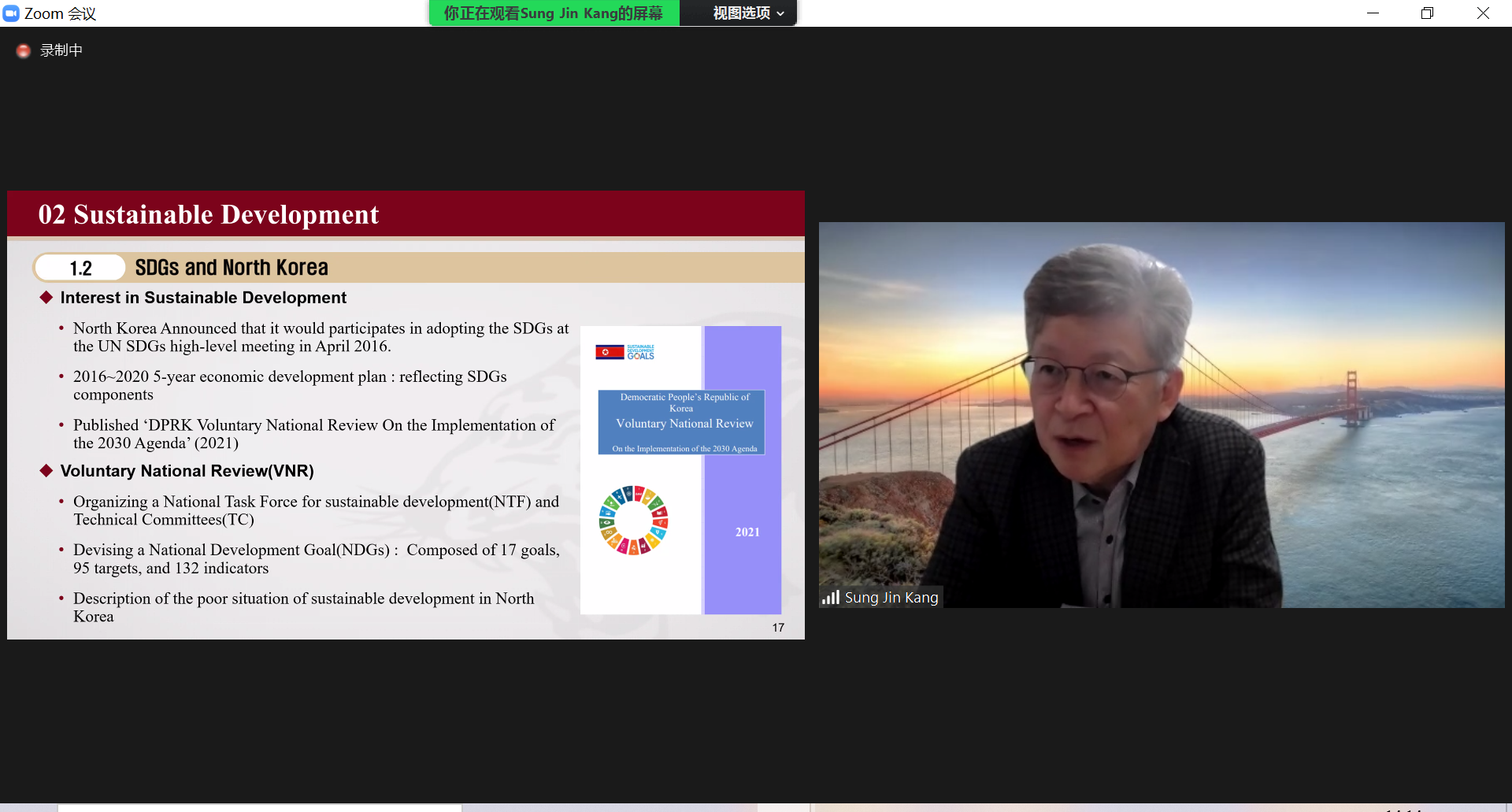 讲座第一部分姜教授介绍了经济改革的相关定义、概念与范畴,随后介绍了不同国家改革的方式与绩效,并提出假设前提,如果朝鲜改革开放,未来将会如何加入到东北亚地区的经济合作中来。第二部分姜教授对朝鲜的经济改革步骤进行了预判。最后姜教授结合联合国的可持续发展指标,对朝鲜可持续发展目标与完成度进行了评估。