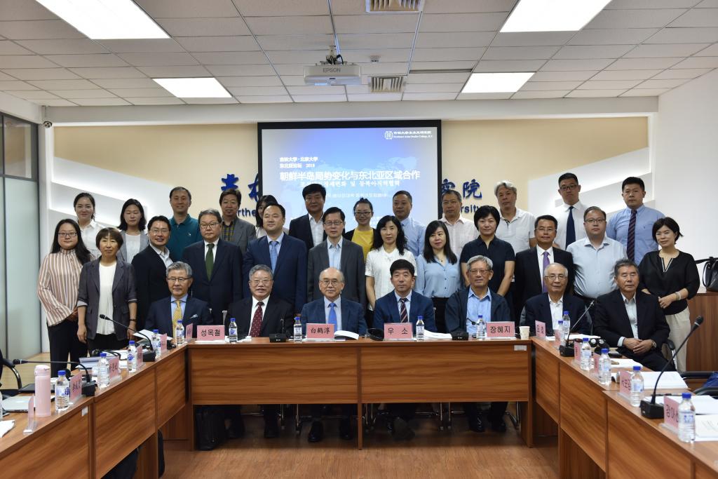 、北京大学、中国社科院、韩国世宗研究所、韩国外交部等单位的30余名学者参加了论坛。会议就朝鲜半岛无核化、朝韩关系、中朝关系、中韩关系、东北亚区域经济合作等议题进行了发表和讨论。此次“吉大·北大东北亚论坛”是2009年吉大东北亚研究院和北大亚太研究院签署合作协议以来成功举行的第九次学术研讨会,会议首次邀请韩国著名智库世宗研究所参加,为论坛增加了新的活力,进一步扩大了我院在东北亚研究和学术交流方面的影响力。