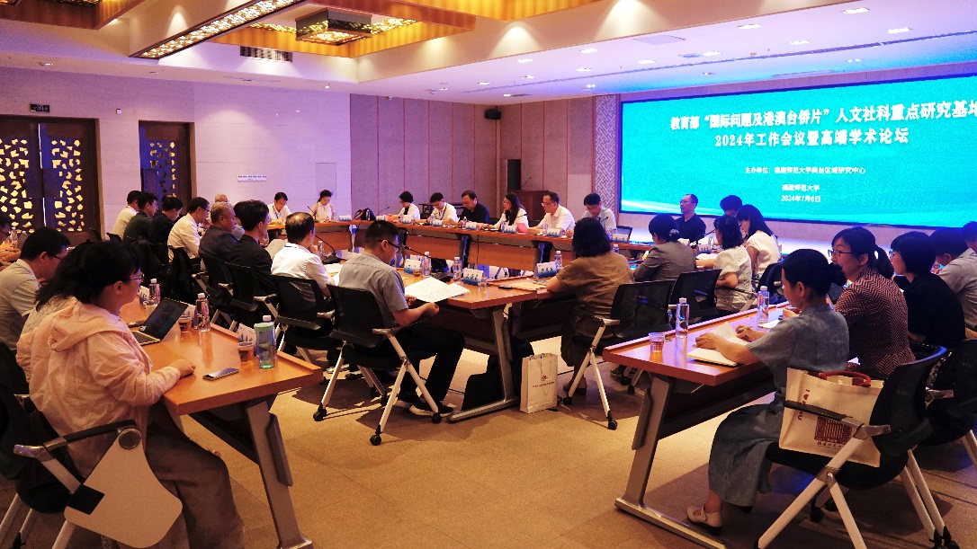 2024年7月6日,由福建师范大学闽台区域研究中心主办的教育部“国际问题及港澳台侨片”人文社科重点研究基地2024 年工作会议暨高端学术论坛在福建师范大学召开。教育部社会科学司二级巡视员梅红、福建师范大学校长王长平、延边大学副校长王洪福等出席会议。来自复旦大学美国研究中心、华东师范大学俄罗斯研究中心、暨南大学华侨华人研究院、南开大学亚太经合组织研究中心、四川大学南亚研究所、上海外国语大学中东研究所、厦门大学东南亚研究中心、厦门大学台湾研究中心、延边大学朝鲜韩国研究中心、中山大学港澳珠江三角洲研究中心、中国人民大学欧洲问题研究中心、福建师范大学闽台区域研究中心、麻豆视频