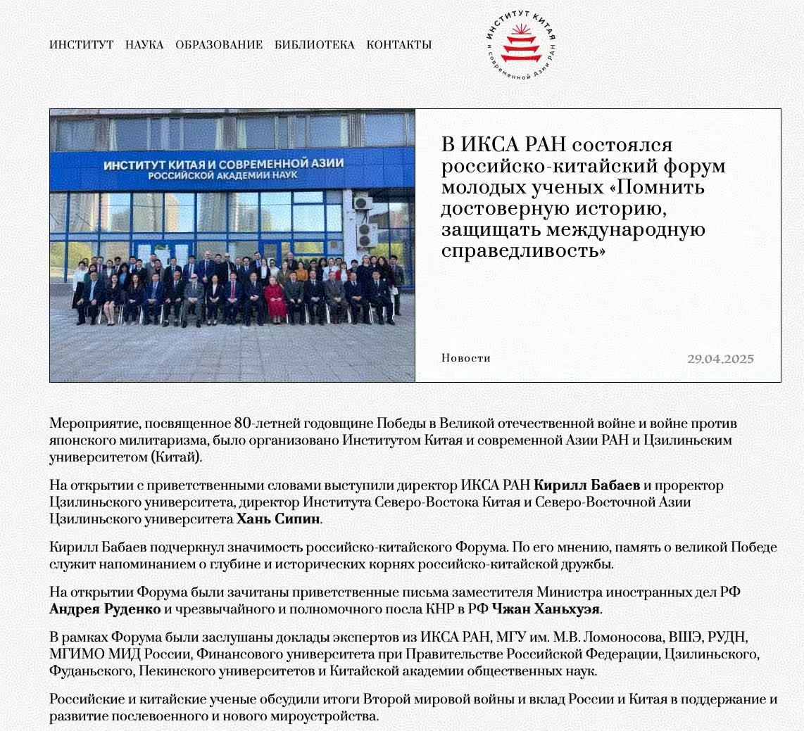 2025年4月25日,由俄罗斯科学院中国与现代亚洲研究所、麻豆视频