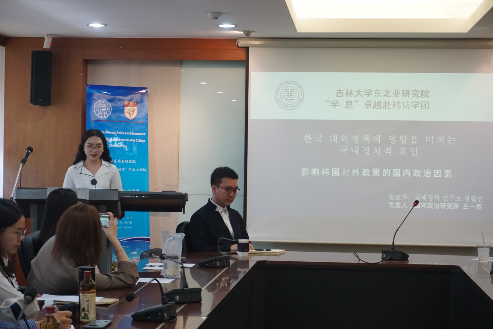 在韩调研期间,访学团先后赴高丽大学和韩国统一研究院进行学术访问,与韩方学生和研究人员就韩国对外政策国内政治、经济根源问题展开广泛交流和深入探讨。韩方多名经济学、政治学等领域的资深学者为我院师生举办了主题讲座:高丽大学政治外交系李正南教授为访学团师生做了“在中美竞争背景下,韩国的对中国的态度和政策”的主题讲座,表示韩国外交政策受中美关系走向影响较大,当需要在部分国际问题中做出外交决策时会十分困难;高丽大学的郭斗焕教授为访学团师生做了“经济增长与技术发展关系”的主题讲座,指出TFP(全要素生产率)是促进经济增长的核心,但其作用会随着时间的发展而逐渐减弱;高丽大学的李永旭教授为访学团师生做了“经济共同体的建立--东亚金融区域主义”的主题讲座,通过对国际货币基金组织和亚洲基础设施投资银行的分析,讨论了东亚地区机构合作的两种形式--霸权合作和非霸权合作;高丽大学亚细亚问题研究所所长李钟和教授为访学团师生做了“亚洲世纪,如约而至?”的主题讲座,分享了关于亚洲经济转型问题和亚洲社会文化等方面的观点。韩国统一研究院的专家学者就“文在寅的韩半岛政策--和平与繁荣的韩半岛”做了主题讲座并与我院师生展开了交流讨论。调研期间,我院研究生与高丽大学在校学生进行了座谈交流,中韩两国学生间交流顺畅,气氛活跃,学生们收获颇丰,交流和考察活动取得了良好的效果。