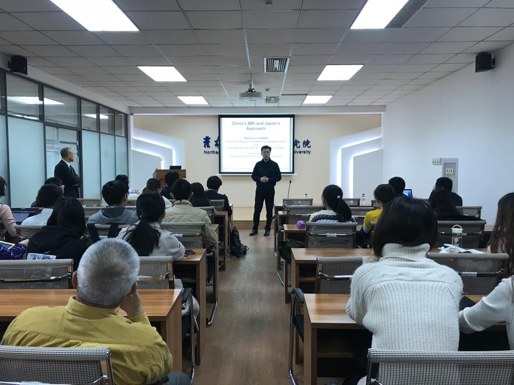 东北亚研究院的邀请,环日本海经济研究所的河合正弘教授在我院作了一场题为“一带一路构想与自由开放的印度太平洋战略”的学术讲座。东北亚研究院王彦军副院长主持,东北亚研究院日本研究所师生出席并聆听了报告。