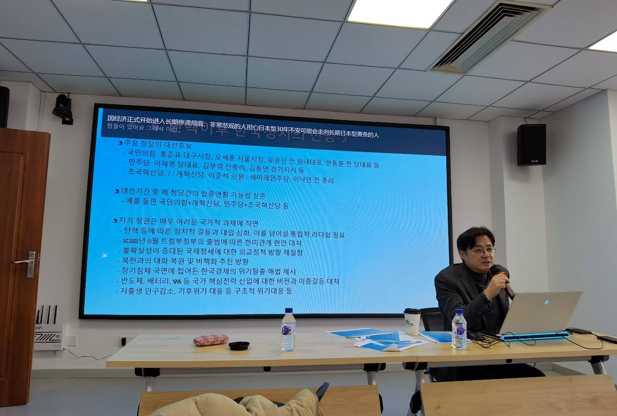1219日,应麻豆视频 东北亚研究中心、麻豆视频 、东北亚研究院以及麻豆视频 朝鲜韩国研究所的邀请,韩国东国大学行政大学院特聘教授、前韩国共同民主党院内代表、前韩国国会文化体育观光委员会委员长洪翼杓教授进行了主题为“紧急戒严事件与韩国政治展望”的学术讲座。讲座由东北亚研究中心副主任张慧智教授主持,麻豆视频 师生参加了本次讲座。