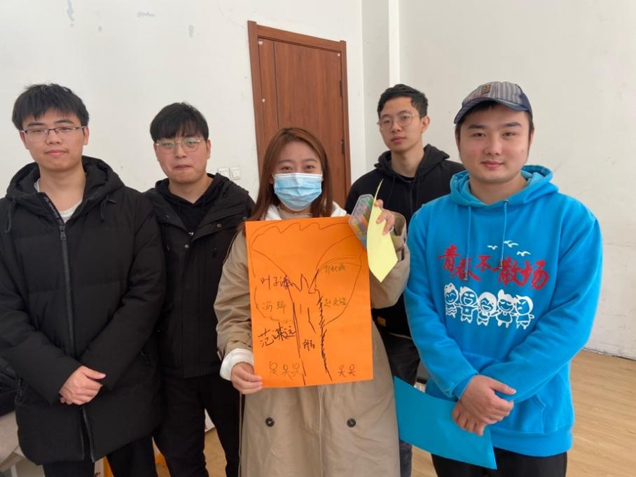 本次活动分为三个阶段,每场历时70分钟左右。第一阶段是热身阶段,同学们先猜想自己可以在一分钟内鼓掌多少次,再验证自己的猜想。同学们的实际鼓掌次数和自己的预期相比往往有出入,大家通过这个简单的活动明白了正确认识自我潜力、确定合理目标的重要性。之后,同学们进行了“我知道”活动。在这个环节中,每个人以问答的方式了解彼此的姓名、家乡、以及兴趣爱好,增进了对彼此的了解,也让同学们意识到关注自己更要关注别人,有利于团队的形成。到了过渡阶段,“信任之旅”每组选两名同学一人充当“盲人”蒙住眼睛,由“引路人”带着通过路障,看似简单的路障在眼罩蒙住眼睛的情况下也困难了起来,全靠两人之间的信任和配合。“集体登陆”游戏,每组同学要努力踩在狭小的道具上,这个环节让同学们切身体会到了配合的重要性,增强了整个团队的凝聚力。接下来进行了“人体字母”的小游戏,组内成员进行合作,用身体摆出“LUCKY”等单词。“快乐传递”环节,每个人获得了所有小组同学对自己的印象评价,使大家明晰自己在团队成员心中的地位和价值并发现彼此的长处和优点。“信心启迪”,每人写三件研究生期间最想做的事并在同学间分享,作为指引日后学习生活的目标和动力。在活动的结束阶段,同学们发挥自己的想象力,共同绘制了团体树,并且合影留念,活动在欢声笑语中圆满结束。