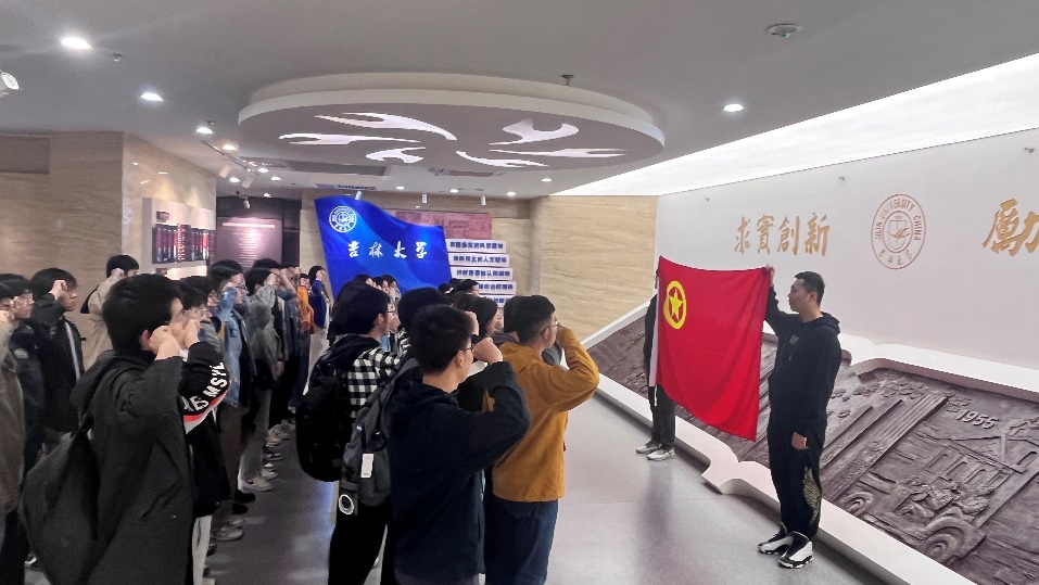 校史馆,由院团委负责人山丹老师带领,并在馆中面向团旗重温入团誓词。