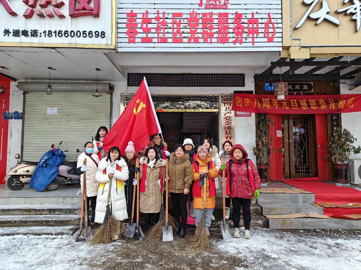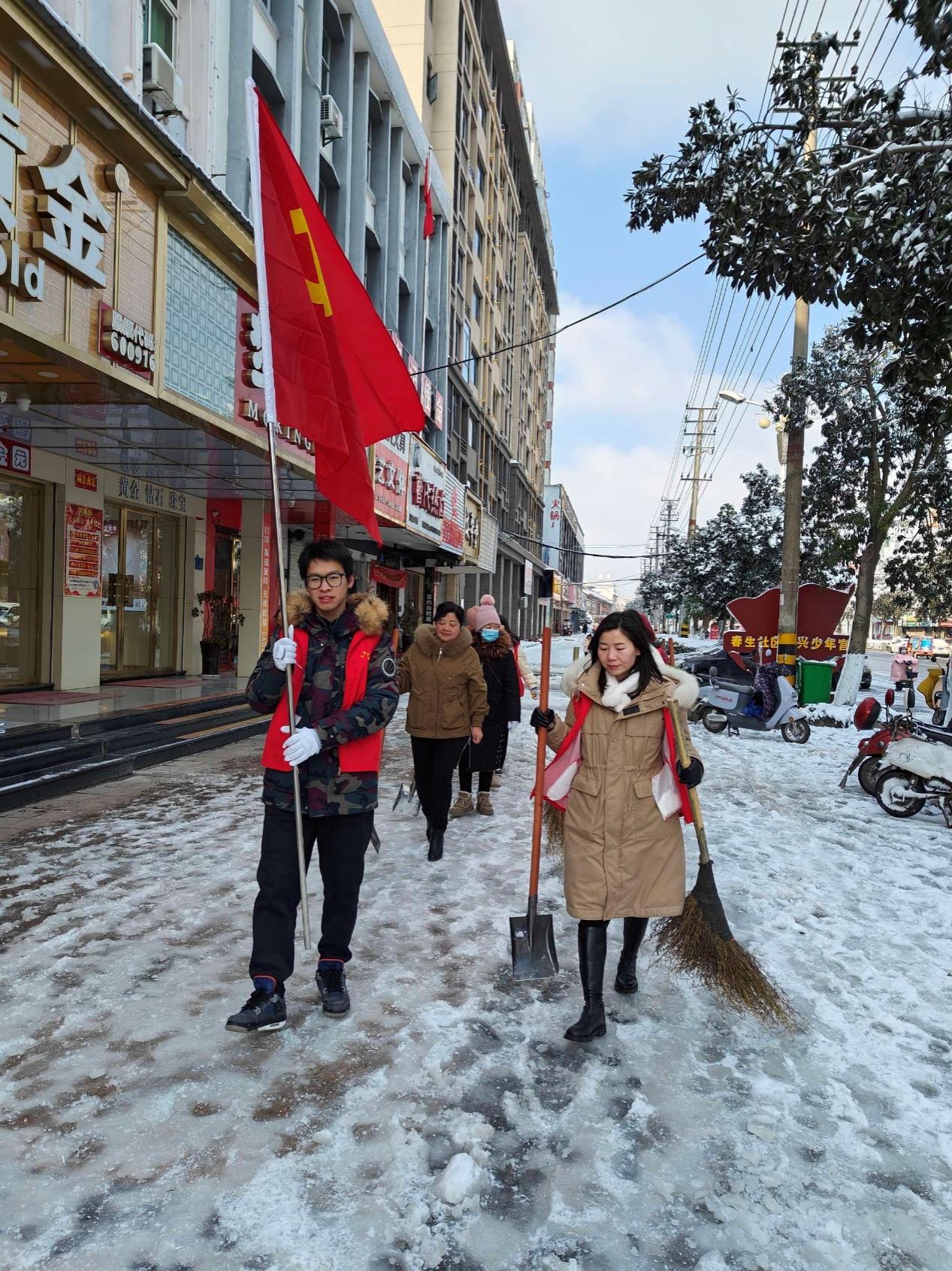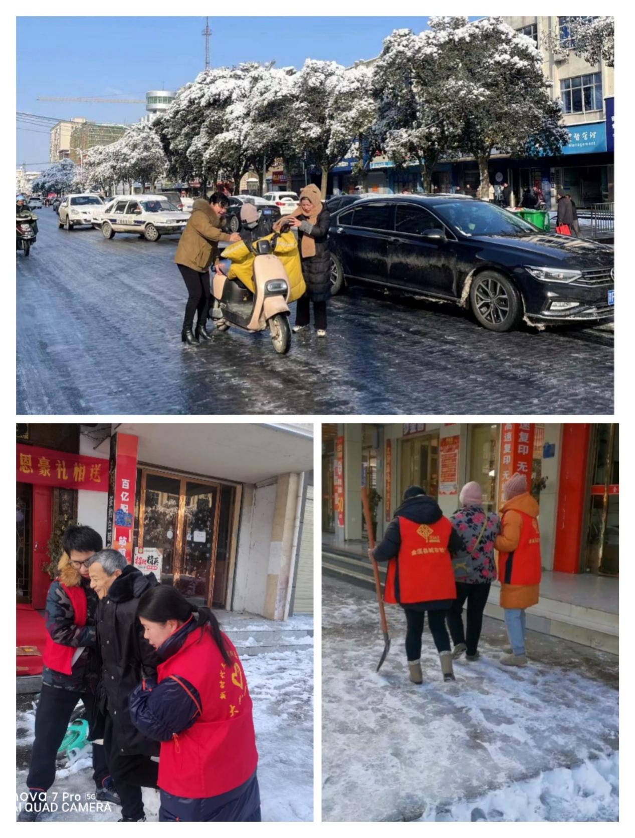在此期间,为保障辖区居民群众的出行安全,小组成员还积极参与志愿活动,在社区范围内开展扫雪除冰行动。大家不畏寒冷,干劲十足,拿着铁锹、扫帚等工具,对辖区主要干道、社区门口、小区门口等重点区域的积雪进行清扫,热心搀扶老人出行,提醒老人注意交通安全。