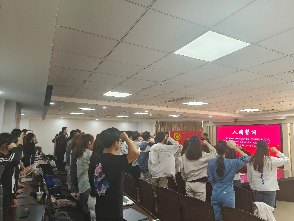 团委于5月7日在东荣大厦404室开展“建功新时代 奋进新征程”重温入党誓词活动。本次活动由团委负责人山丹老师主持,本科生辅导员贾琼老师及70余名青年团员参加。