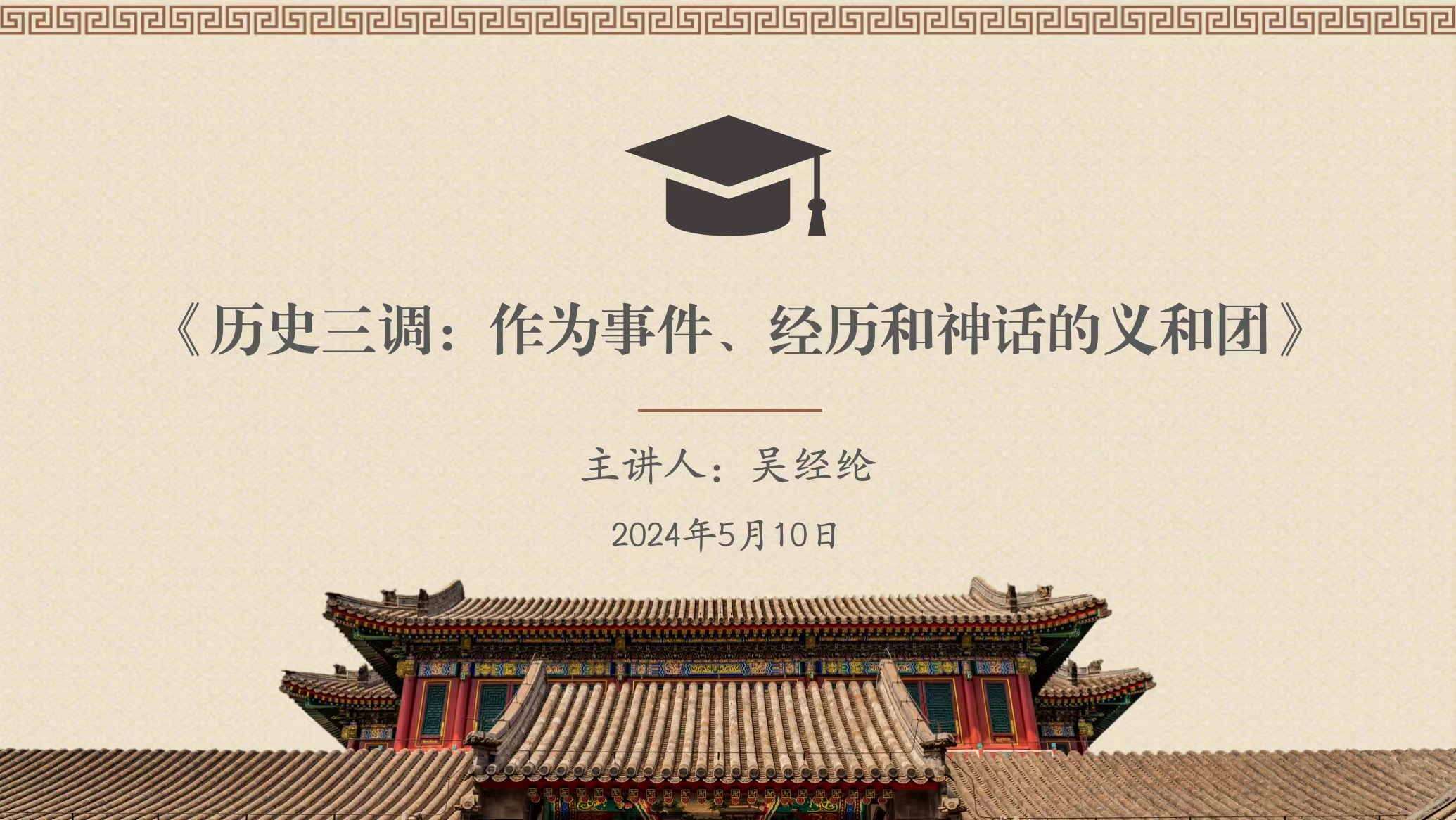 《历史三调:作为事件、经历和神话的义和团》是一部有关史学理论、历史哲学的著作,曾获1997年美国历史学会费正清东亚历史学奖、1997年新英格兰历史学会图书奖。吴经纶同学首先介绍了作者柯文的 “中国中心观”,分析了柯文早期专著《在中国发现历史——中国中心观在美国的兴起》如何批评基于“欧洲中心论”视角下的三种东亚史研究路径,分别为“冲击—回应”模式、“传统—近代”模式和帝国主义模式。随后,吴经纶同学围绕《历史三调》一书介绍了柯文“中国中心观”研究范式的延续,展示了认识“义和团运动”的三个不同维度,即神话制造者的“过去”、事件经历者的“过去”和历史学家重塑的“过去”。吴经纶同学认为,柯文有关“义和团运动”发展脉络和叙事嬗变的历史分析,具有后现代主义史学色彩;政治符号的塑造和历史书写的变迁,是后现代史学研究的重要内容。