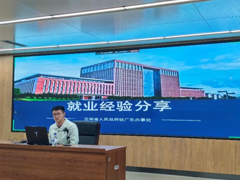 党委副书记兼副院长赵毅博老师主持,八位具有丰富选调公考、求职经验的优秀毕业生受邀分享自身经历和经验,研究生辅导员山丹老师以及学院部分本科生、研究生参加。