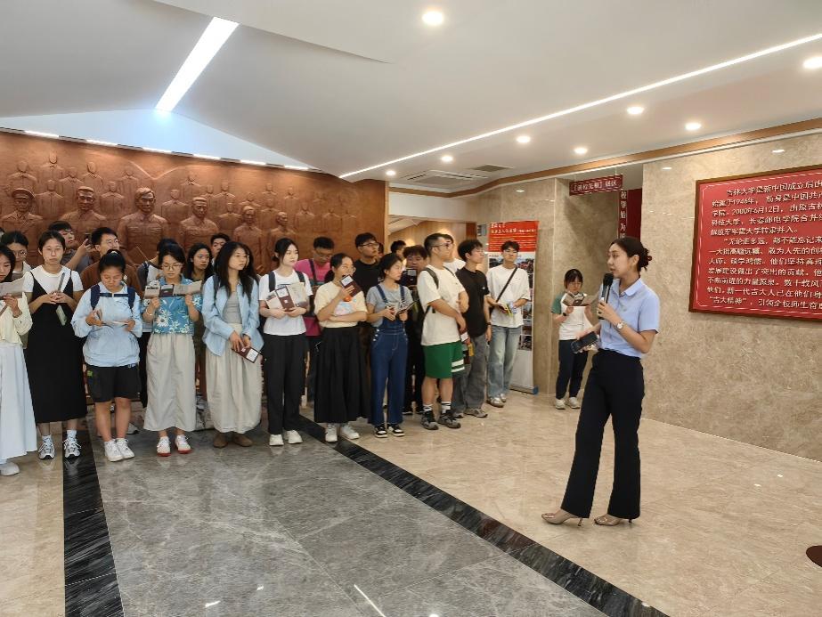 纪念馆内,一张张照片、一段段文字、一件件实物将同学们拉入那段风起云涌的岁月。同学们跟随讲解员的讲解,回顾学校七十余年的办学历程,探寻林枫、饶斌、江一真、李四光、陈先舟、任抟九、吕振羽、匡亚明、唐敖庆等吉大先贤的奋斗足迹,心中无不触动,内心涌动着深沉敬意。